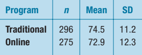 Problem 12.5 An accounting firm is interested in providing opportunities for its auditors to gain more expertise in statistical sampling methods. They wish to compare traditional classroom instruction with online self-paced tutorials. Auditors were assigned at random to one type of instruction, and the auditors were then given an exam. The table shows how the two groups performed.