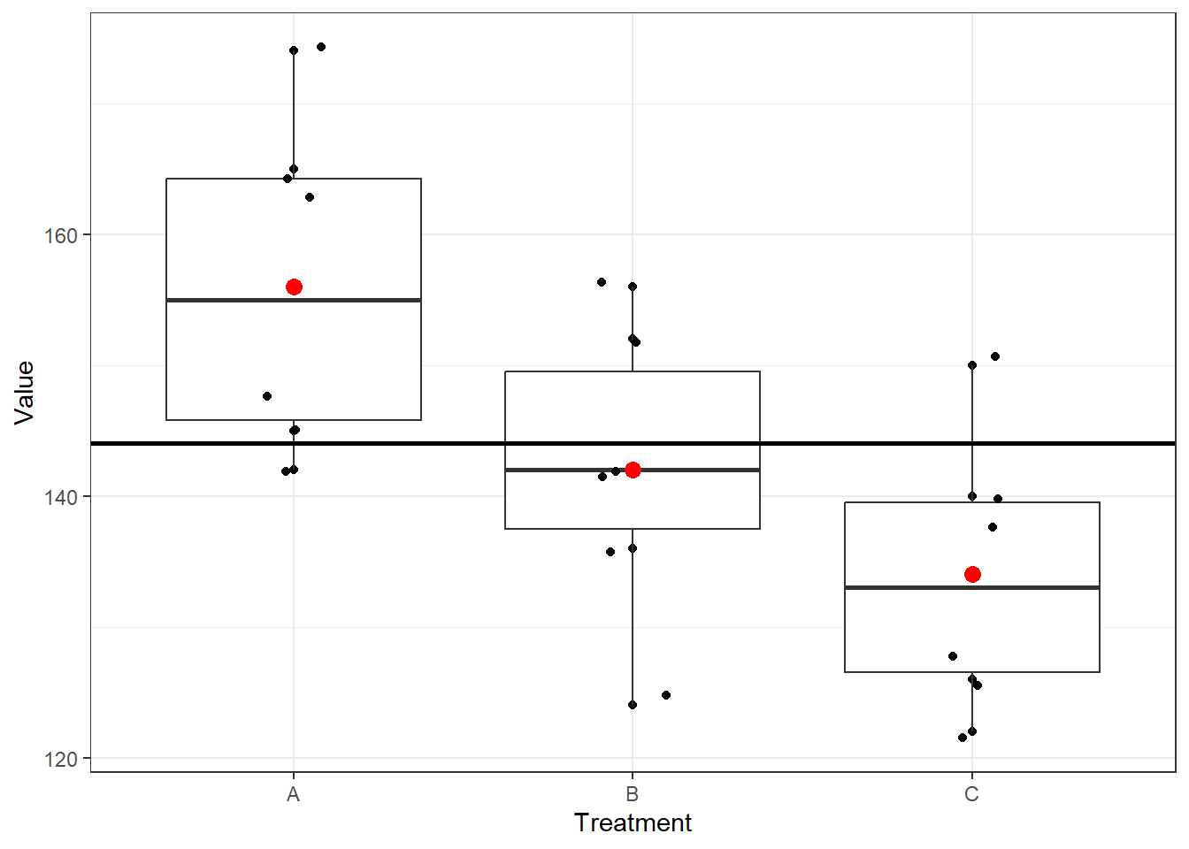 Now we see how the “Values” are distributed for 3 different Treatments.
