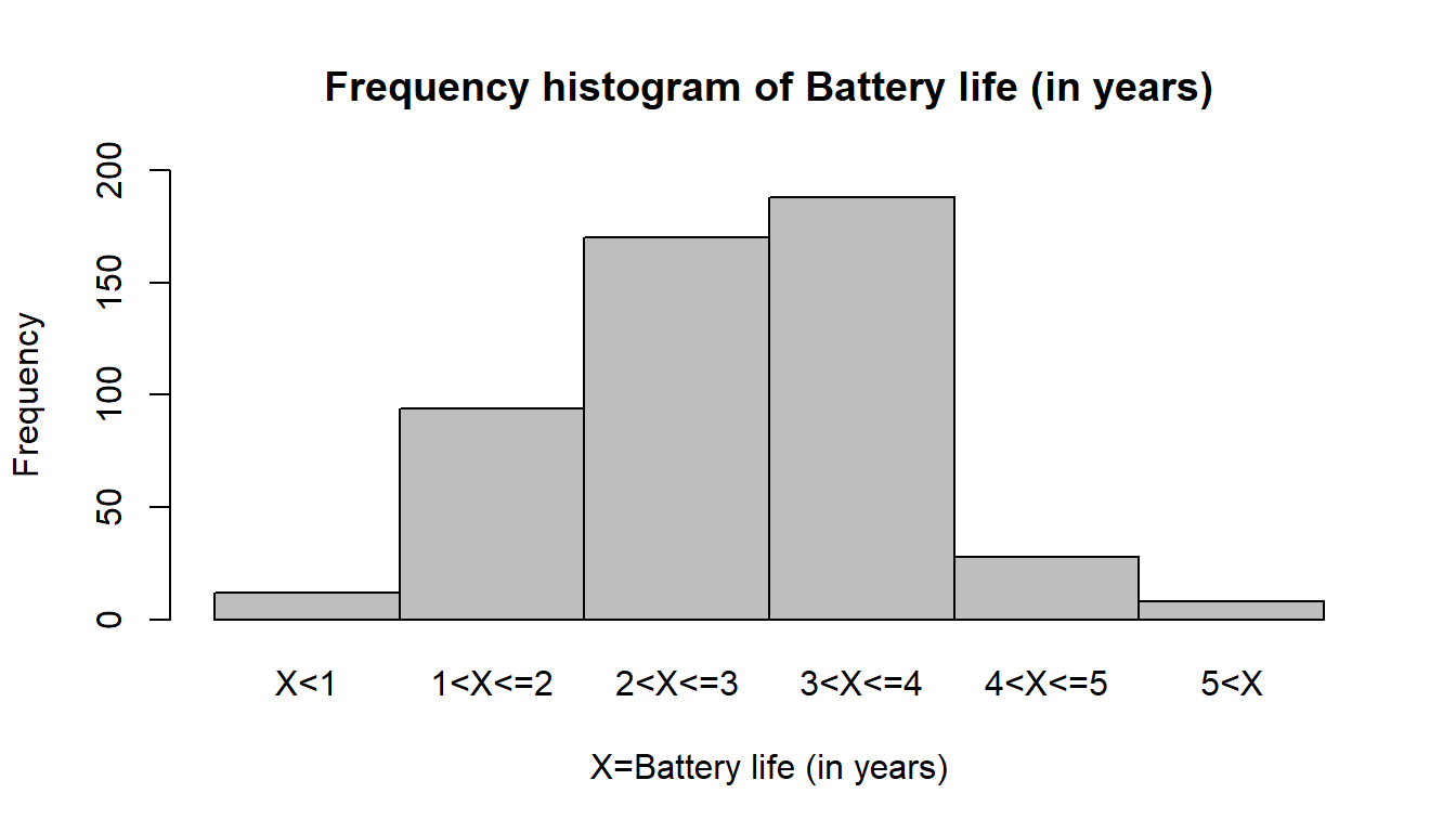 Problem 14.5 A random sample of 500 car batteries was taken and the life of each battery was measured. Letting X denote battery life in years, suppose that the sample revealed the following distribution of battery life: