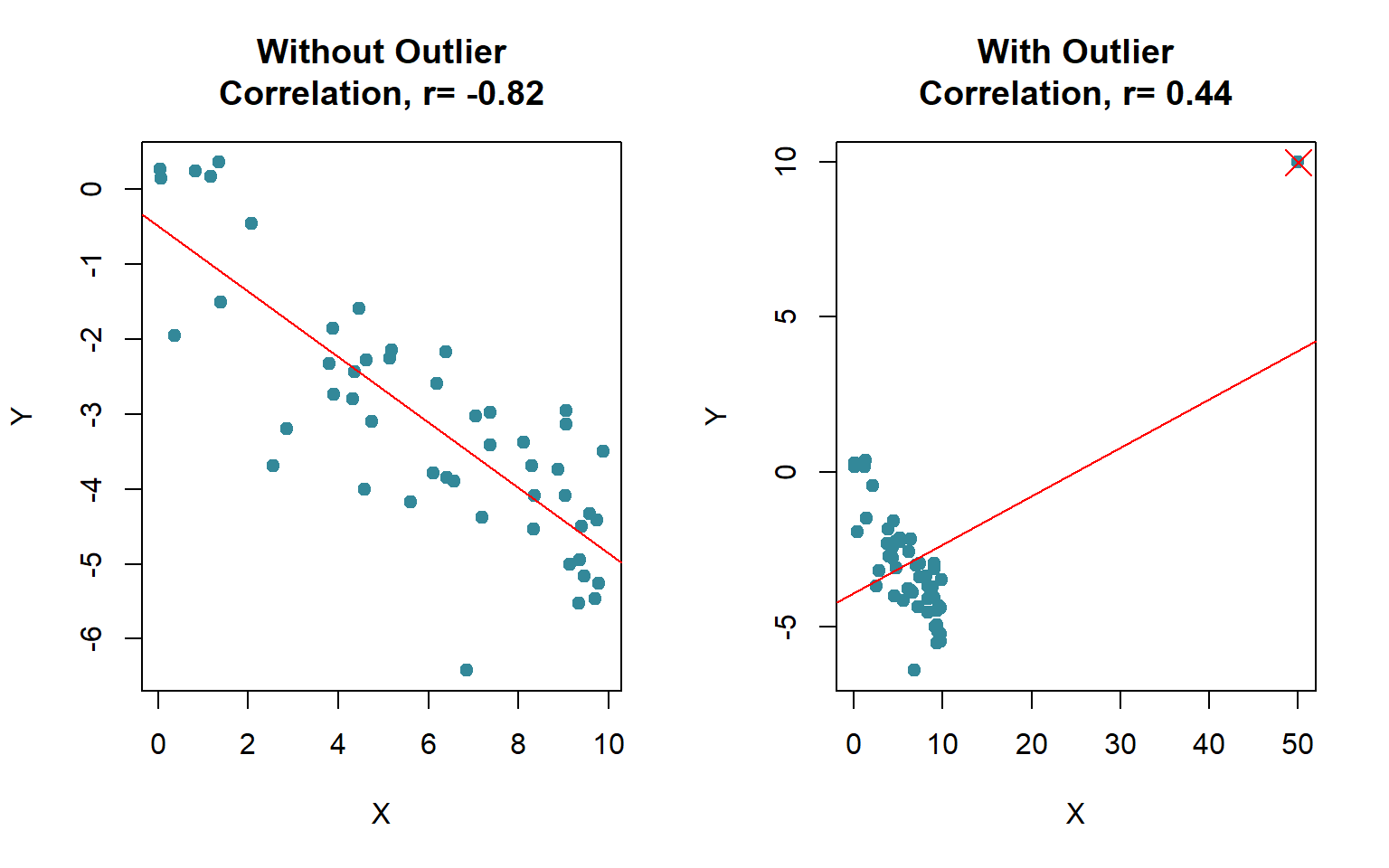\(\rho\) is very sensitive to outliers in the sense that a single outlier could dramatically affect its value.