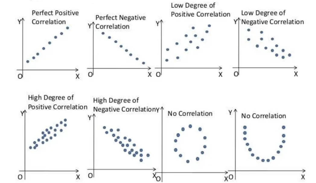 In statistics, correlation refers to degree and direction of linear relationship between two quantitative (interval or ratio scale ) variables. For example-