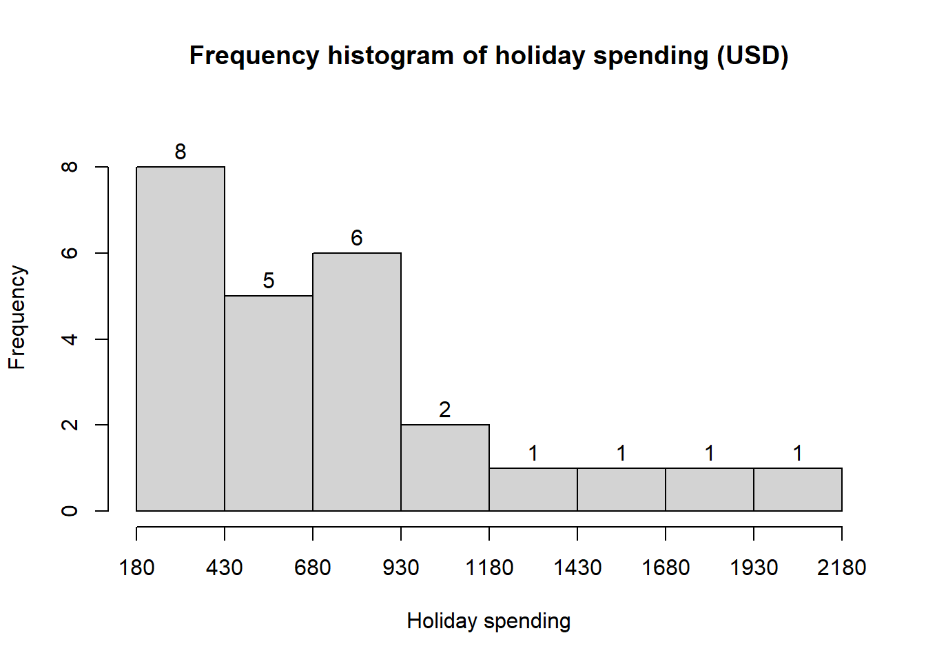 - Prepare a histogram and comment on the shape of the distribution.