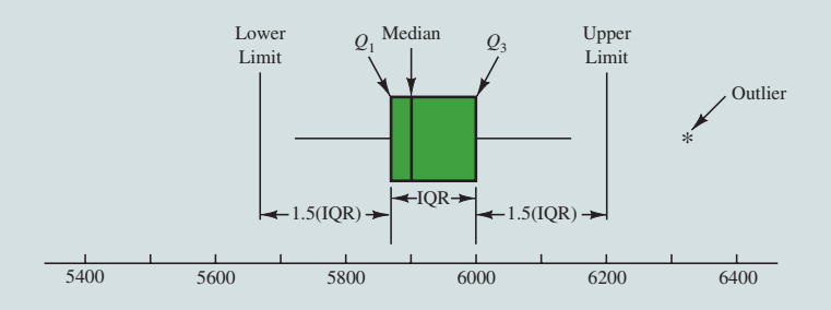 3.20 A data set has a first quartile of 42 and a third quartile of 50. Compute the lower and upper limits for the corresponding box plot. Should a data value of 65 be considered an outlier?