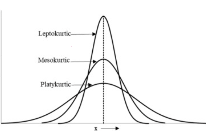 \[ Kurtosis=\frac{1}{n}\frac{\sum (X-\bar X)^4}{s^4} \]